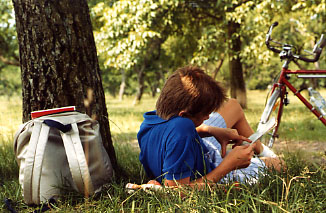 Vater und Sohn auf der ersten gemeinsamen Radtour. Der Plan: im Viereck durch vier Länder - von Lothringen nordwärts, von der Südspitze Belgiens durch Luxemburg nach Osten, durch den Zipfel westlich des Hunsrücks nach Süden und zurück zum Ausgangspunkt. Der Anlauf: Gut eine Woche vor dem Start schicken wir unsere Fahrräder als Reisegepäck voraus. Der Bahnhof von Pagny-sur-Meuse an der Strecke Nancy-Paris findet sich auch im Verzeichnis des Gepäckschalters. Am nächsten Tag gehe ich zu unserem Ein-Mann-Fahrkartenschalter und verlange ganz arglos: "Zweimal Pagny-sur-Meuse einfach." - "Gibt`s nicht", kommt es wie aus der Pistole geschossen vom Mann alter Schalterbeamtenschule zurück. Schließlich lässt er sich aber doch davon überzeugen, in seinen Kladden nachzusehen und festzustellen: Wohin die Bahn Fahrräder als Gepäckstücke befördern kann, kann sie auch Personen als Reisende befördern.