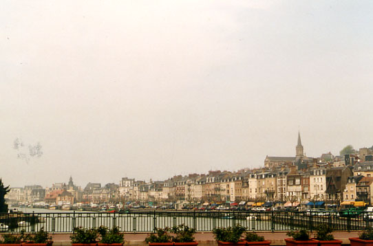 Das nächste geht gleich gut los. Über die Brücke, die immerhin acht Jahre jünger ist als ich, gelange ich auf die andere Seite und 20 Kilometer weiter nach Honfleur. Vorher meldet sich aber eines meiner Knie und tut bei jedem Tritt in die Pedale unfein weh. Für mich diagnostiziere ich eine Schleimbeutelentzündung. Dabei hab`ich keine Ahnung von sowas, aber der Begriff suggeriert mir wahrscheinlich, dass diese Sache nicht so ernsthaft ist, wie sie sich anfühlt (und tatsächlich wird es nach ein paar Tagen etwas besser/oder ich gewöhne mich mit der Zeit daran). In der Altstadt von Honfleur wird mir an jeder zweiten Ecke mitgeteilt, dass hier der Komponist Eric Satie geboren wurde - macht nix, mir ist nicht bewusst, Musik von ihm zu kennen.