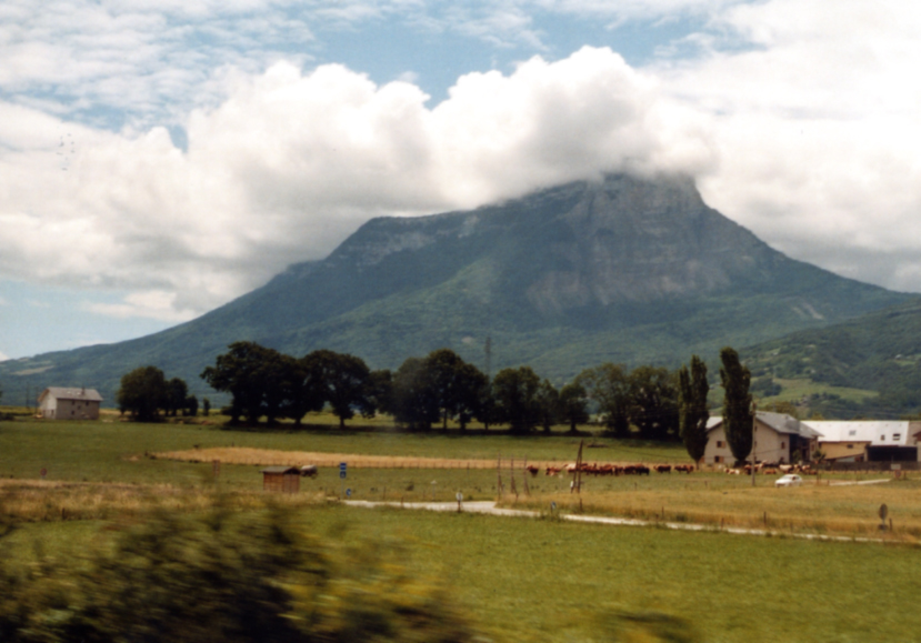 25. Mai: Immerhin. Ein Kind ist lebhaft an dem interessiert, was der Mann da macht, der allein beim Frühstück sitzt. Als die Mutter merkt, dass es mich nicht stört, wendet sie sich wieder ihren Freundinnen zu, während vorne im Laden die Baquettes über die Theke wandern. Ich wandere die Straße hoch zum Col du Granier (1134m), über dem sich der Mont Granier (1933m) wie ein mächtiger Schiffsbug über das Land südlich Chambéry schiebt. Unter dem Gipfel vorbei biege ich nach rechts ab auf die Straße hinunter ins Tal der Isére. In Chapareillan nehme ich zusammen mit einer älteren Dame ein Buswartehäuschen in Beschlag. Es ist warm. Im Bus nach Chambéry schaue ich durch das Fenster zurück: