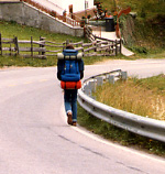 kennengelernt habe. Auf der Steiltreppe (mit lauter unsymmetrischen Stufen) zum Bistinepass (2274m) überholt mich ein Jogger! Nun gut, er hat keinen schweren Rucksack auf dem Buckel. Im Zwischental des Gamsabachs laufe ich einer Familie aus Holland über den Weg und wundere mich, dass sie ihre Band "Nits" und ihren Hit "In the Dutch Mountains" nicht kennen. Über den Gebidumpass (2201m) laufe ich zum Bergdorf Gspon und blicke in den Abgrund des Saas-Tals, über 1000 Meter tiefer. Es wird ein eiliger Abmarsch, denn ich sollte dringend in Stalden noch eine offene Bank aufsuchen in dieser Vor-Geldautomaten-Ära. Trotz wieder vollem Geldbeutel ist es mir noch zu früh, um unten zu bleiben. Also steige ich auf der anderen Seite nochmal hinauf auf der Straße nach Törbel. Vor einem alleinstehenden Haus bei der Abzweigung Embd schraube ich den Gartenschlauch vom Wasserhahn und lösche meinen Durst. Gegen den Bierdurst kann ich am Abend was tun im Restaurant Morgenrot in Emd, wieder auf über 1300 Metern Höhe. Die Bedienung spricht mit jugoslawischem Akzent. Wer von uns beiden wundert sich mehr, was der andere hier oben verloren hat?